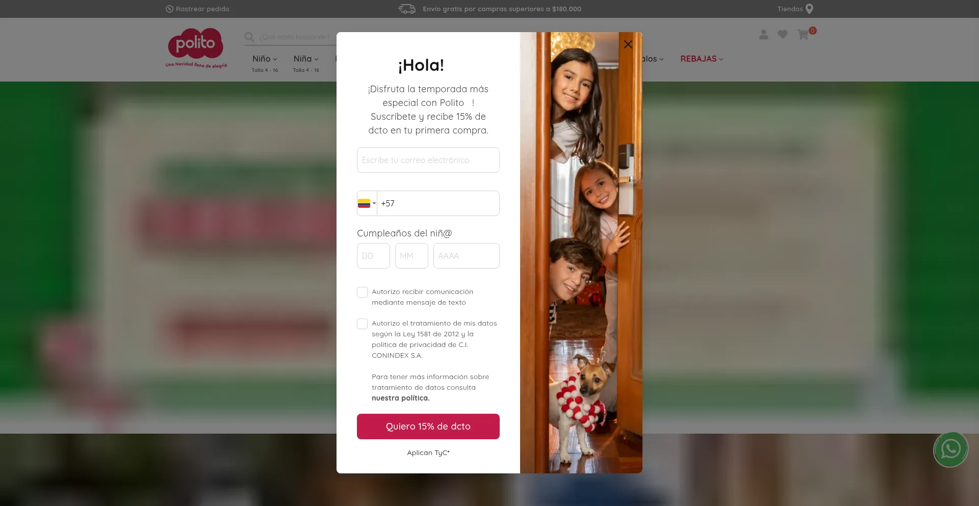 El sitio web implementa formularios de recolección de datos solicitando información personal incluyendo nombres, direcciones de correo electrónico, números de teléfono u otros detalles sensibles. Los usuarios deben verificar la legitimidad de polito.com.co y revisar políticas de privacidad antes de enviar datos personales.