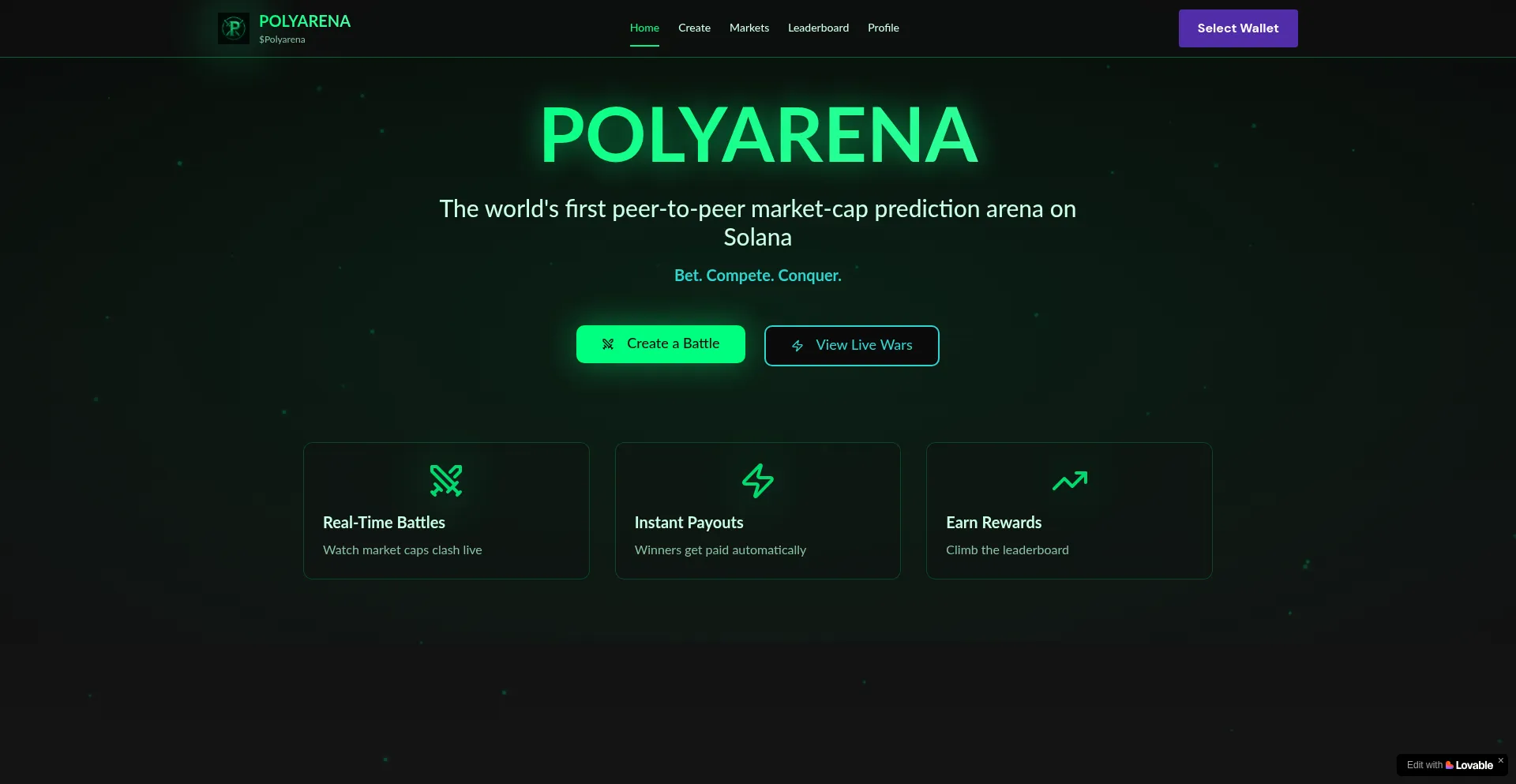 Polyarena is the world's first peer-to-peer market-cap prediction arena on Solana