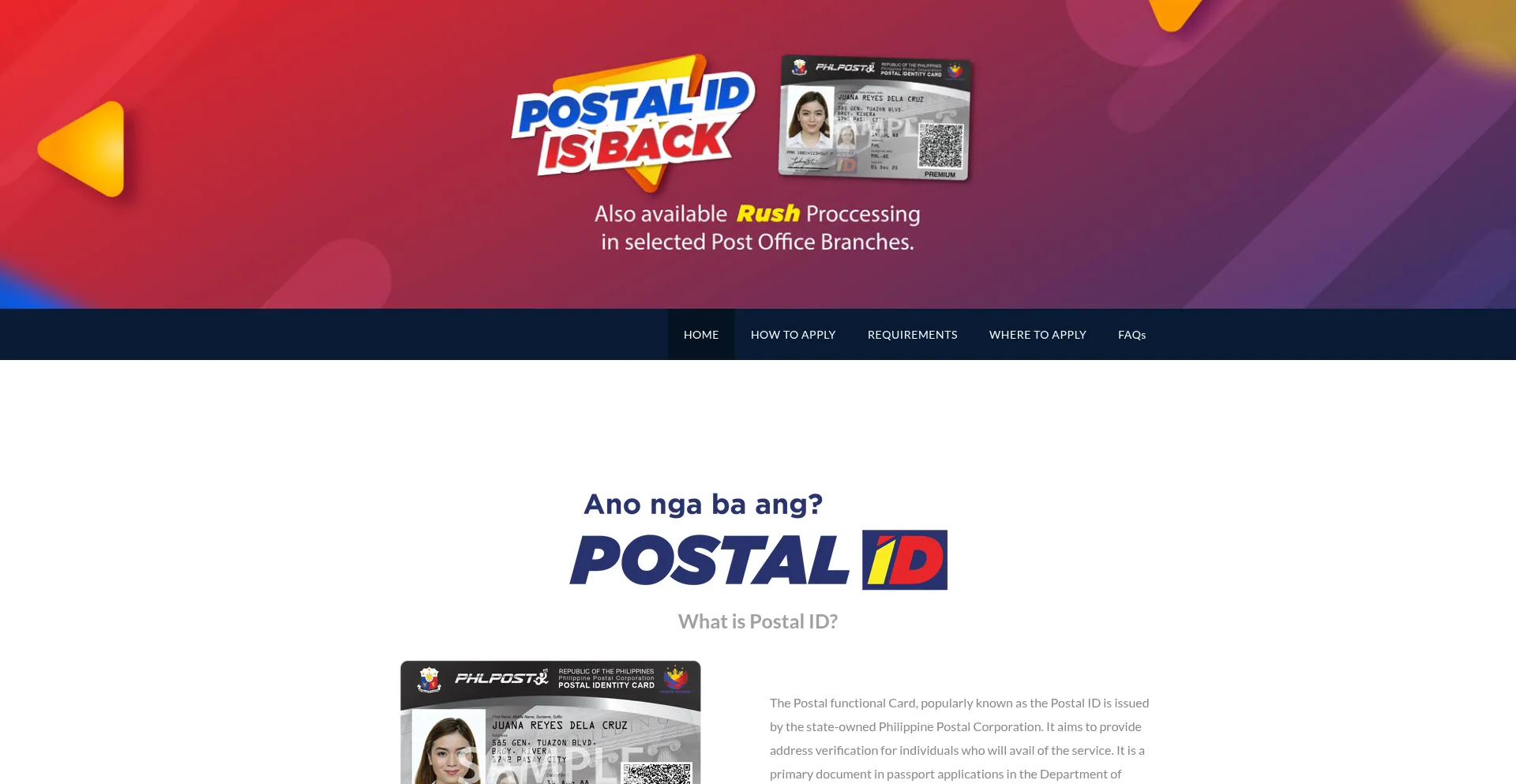 The Improved Postal ID is a valid government ID for almost anyone who needs a proof of identity and address in the Philippines. It is the newest government identity card issued ...