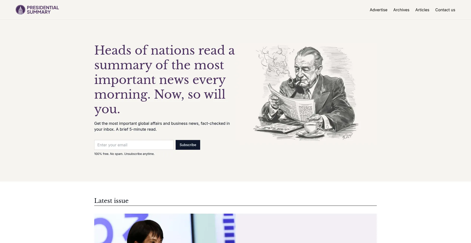 Get the most important global news and analysis every morning with Presidential Summary. Quick, clear, and trusted updates delivered to your inbox.