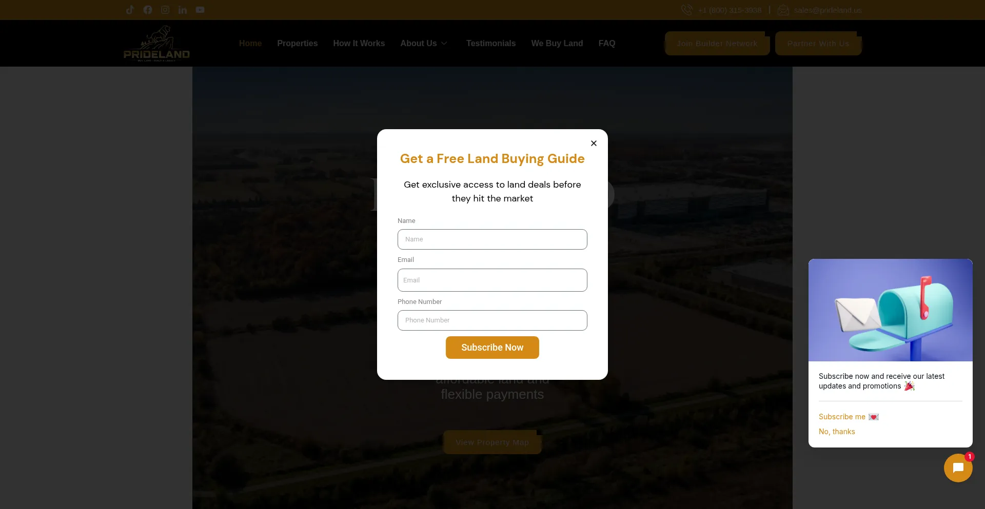 El sitio web implementa formularios de recolección de datos solicitando información personal incluyendo nombres, direcciones de correo electrónico, números de teléfono u otros detalles sensibles. Los usuarios deben verificar la legitimidad de prideland.us y revisar políticas de privacidad antes de enviar datos personales.