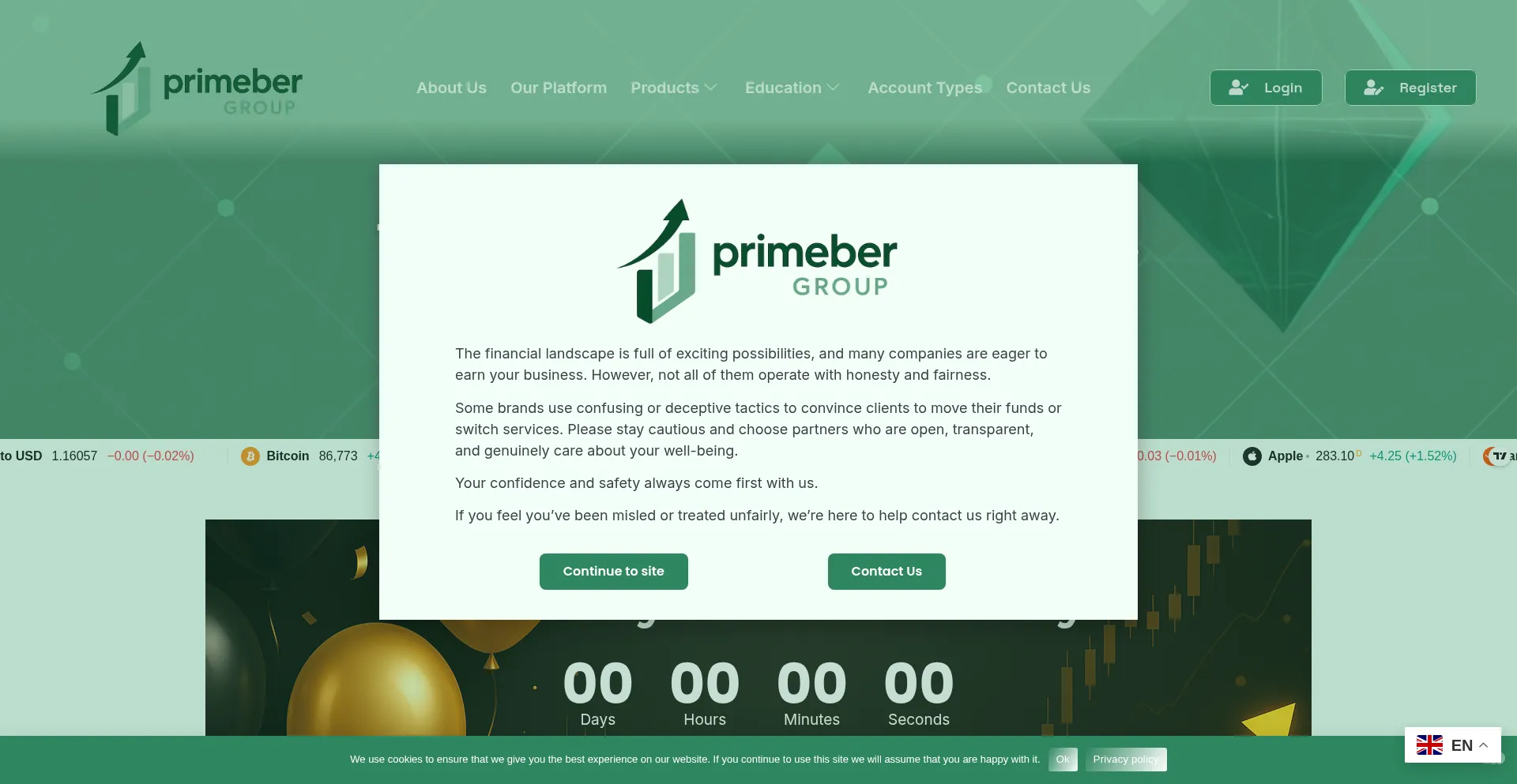 El sitio web implementa mecanismos de consentimiento de cookies en cumplimiento con regulaciones de privacidad como GDPR o CCPA. Esto demuestra que primebergroup.com adhiere a estándares de protección de datos y proporciona a los usuarios control sobre prácticas de recolección de datos personales.