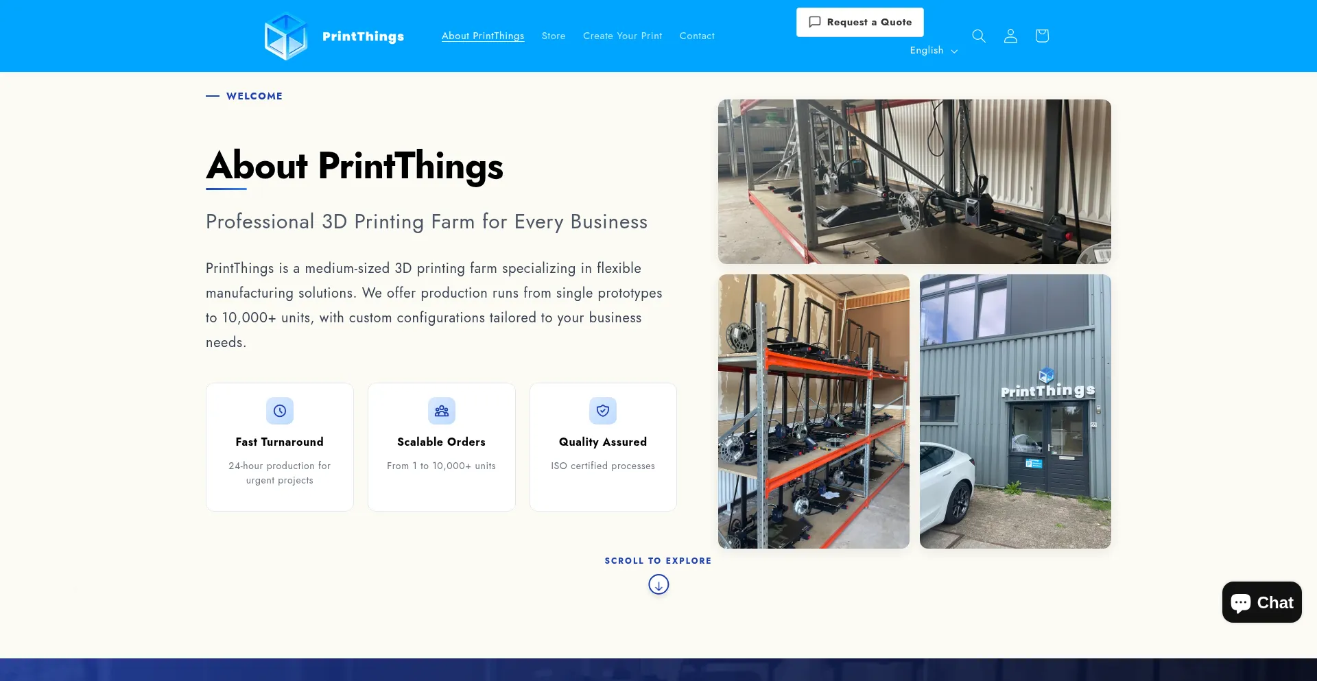 El sitio web printthings.store utiliza soluciones de plataforma de comercio electrónico gratuitas, lo que puede indicar operaciones conscientes de costos pero también podría sugerir limitaciones en características de seguridad, soporte al cliente o funcionalidad avanzada comparado con soluciones de grado empresarial.