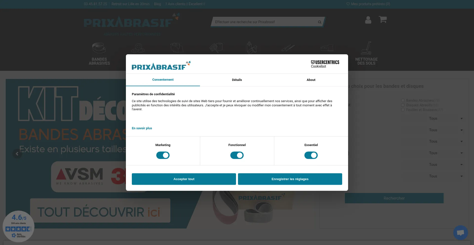 bat.bing.com scripts.clarity.ms www.netreviews.com app.usercentrics.eu consent.cookiebot.com client.crisp.chat stats.g.doubleclick.net www.prixabrasif.fr googleads.g.doubleclick.net www.google.com +30 más