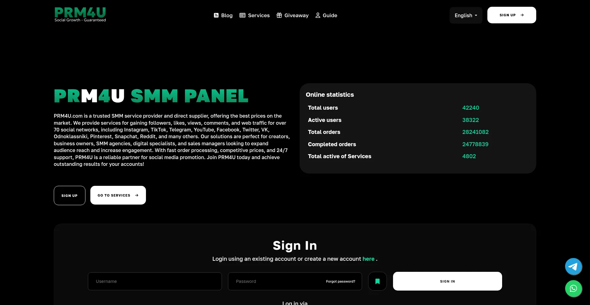 Best SMM panel for fast, cheap, and stable social media growth. Instant & automated orders, 24/7 support. Works on 70+ platforms including Telegram , Instagram , TikTok , YouTub...