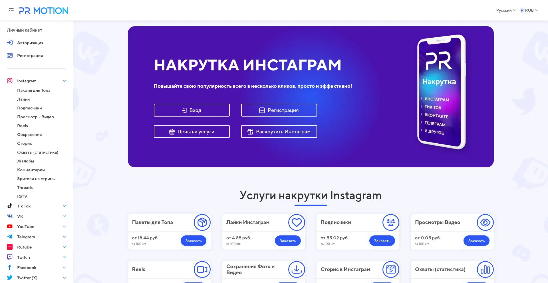 Накрутка Инстаграм: Лайков, Подписчиков, Просмотров - недорого и бесплатно