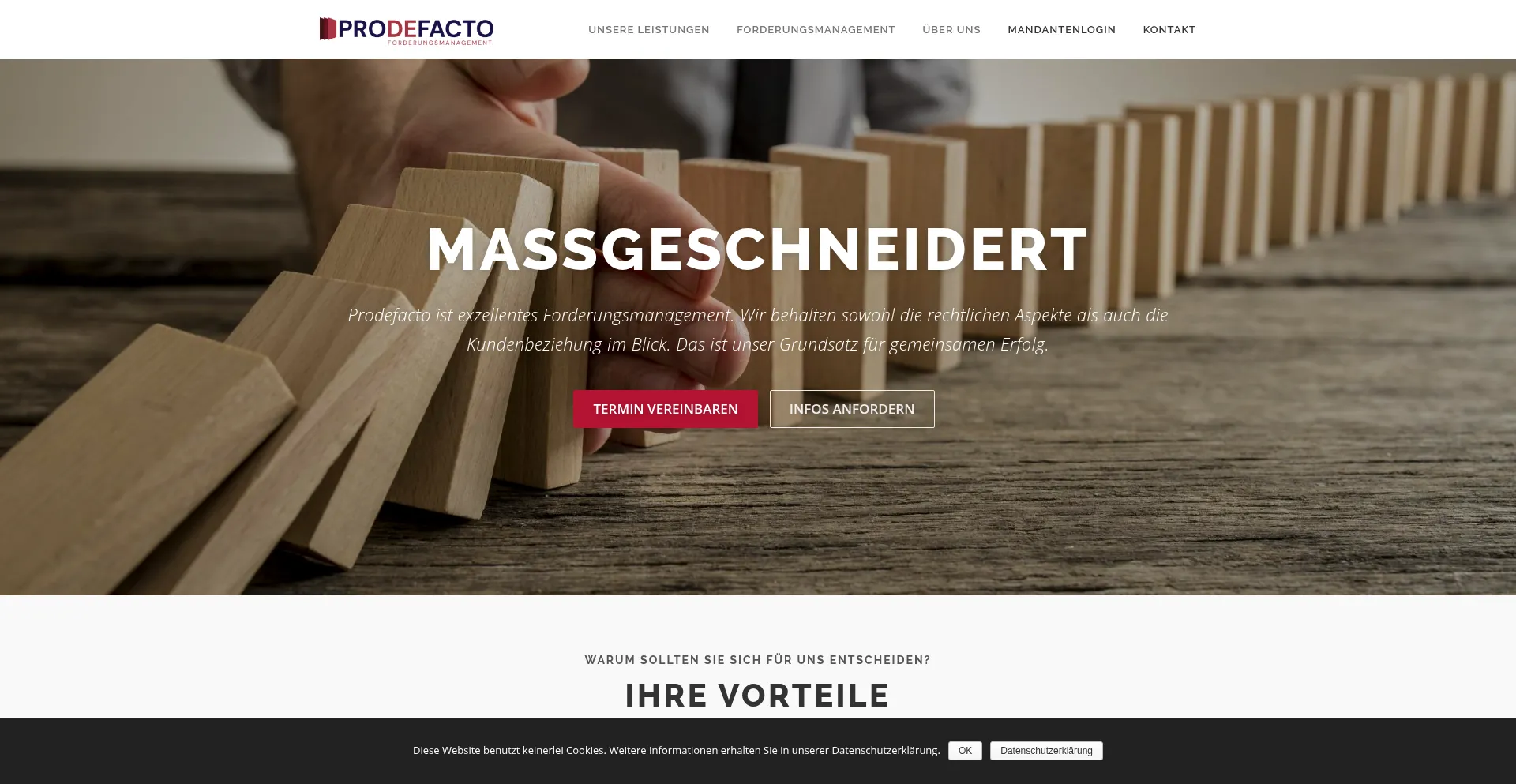 Prodefacto ist exzellentes Forderungsmanagement. Wir behalten sowohl die rechtlichen Aspekte als auch die Kundenbeziehung im Blick. Das ist unser Grundsatz für gemeinsamen Erfolg.