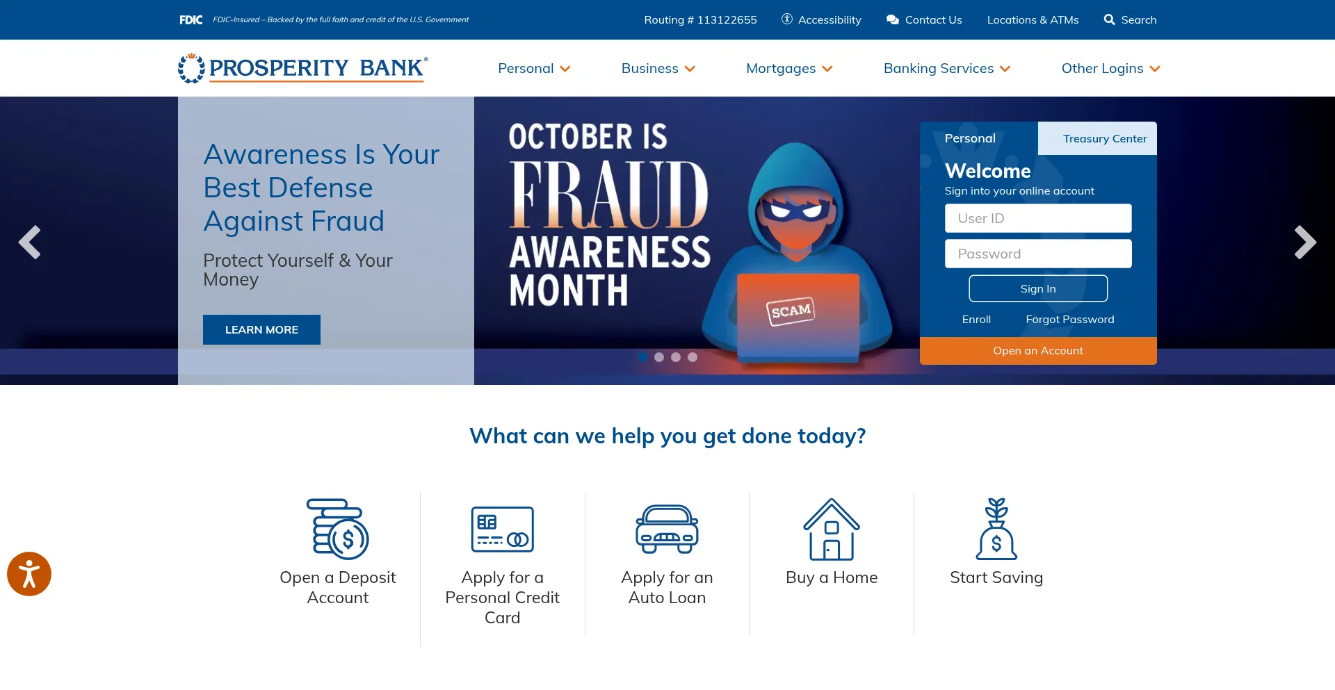 Prosperitybankusa.com Reseña del sitio web