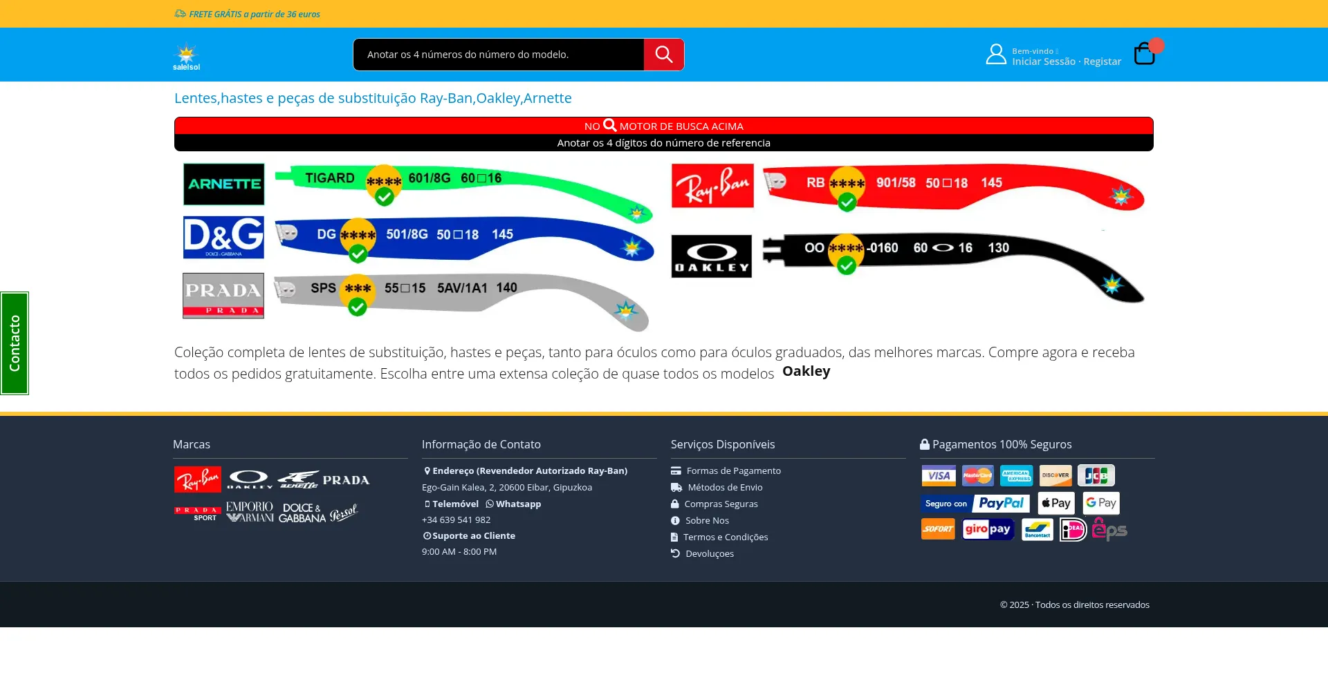 Salelsol.eu Lentes, hastes e peças sobresselentes originais