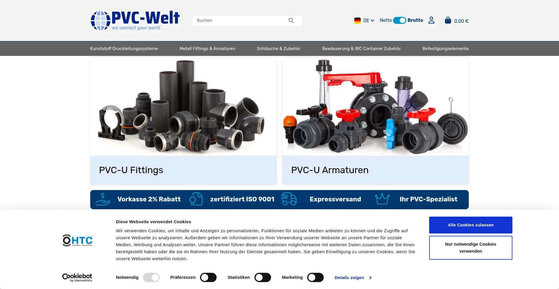 Herzlich willkommen bei PVC-Welt, dem Online Shop mit Topprodukten von HTC – PVC-U Rohre, Armaturen und Fittings.