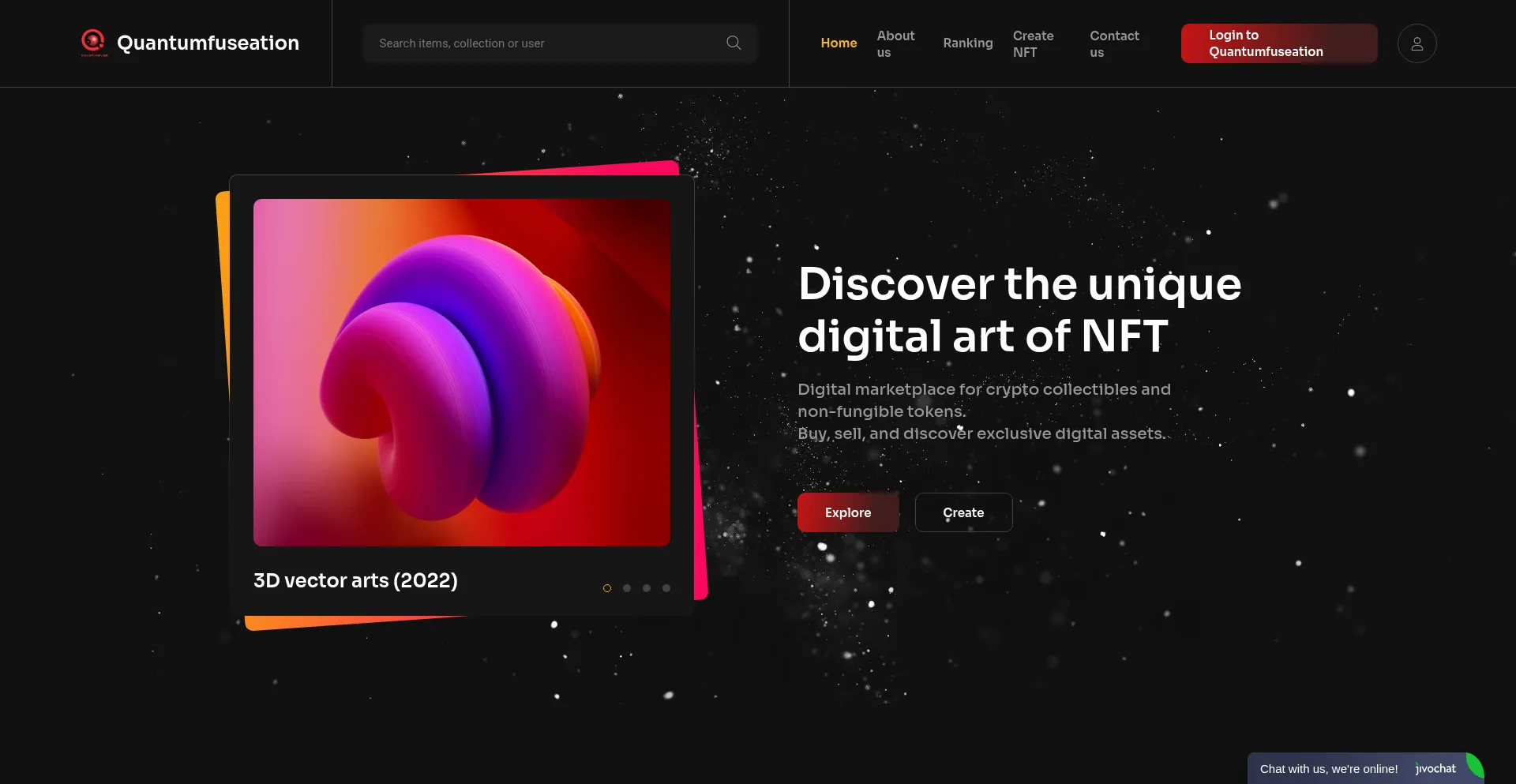 Create and Sell your own NFT and other Digital assets with Quantumfuseation. Your No.1 Digital Marketplace.