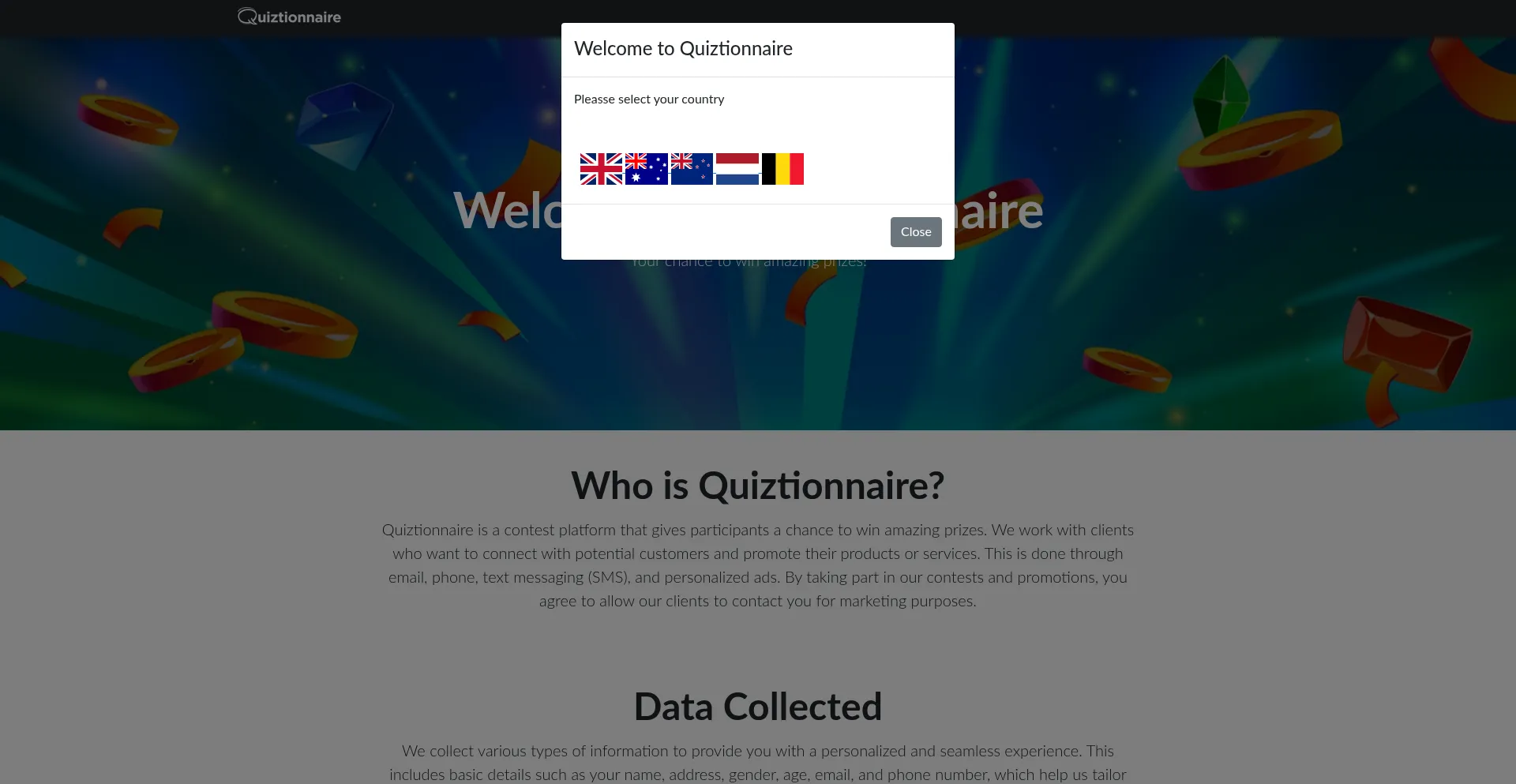 Quiztionnaire.co Sitio web fraudulento