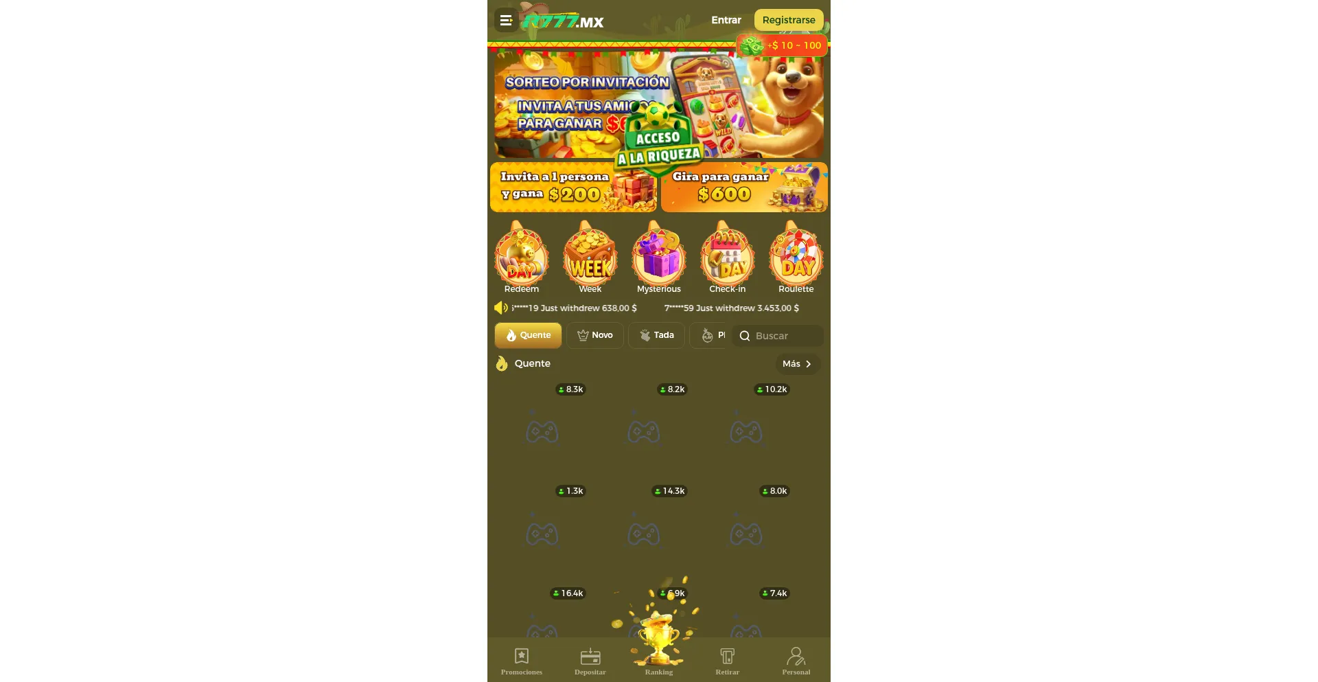 ofrece lo mejor de los juegos populares. Ven conmigo y conviértete en el próximo millonario.