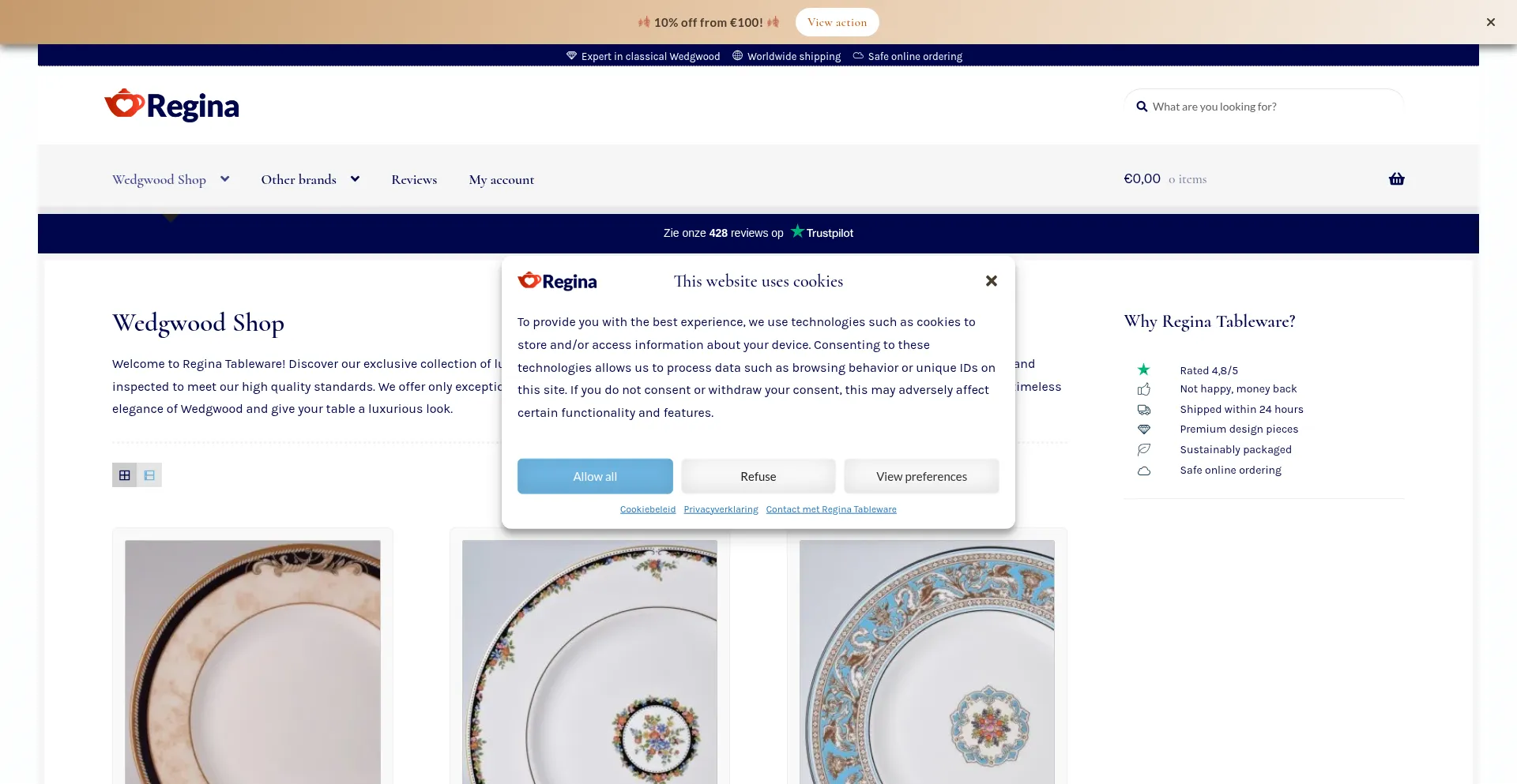 Regina Tableware offers beautiful classic Wedgwood crockery. Manually inspected and in very good condition. Customers give a 9,6. View the offer.