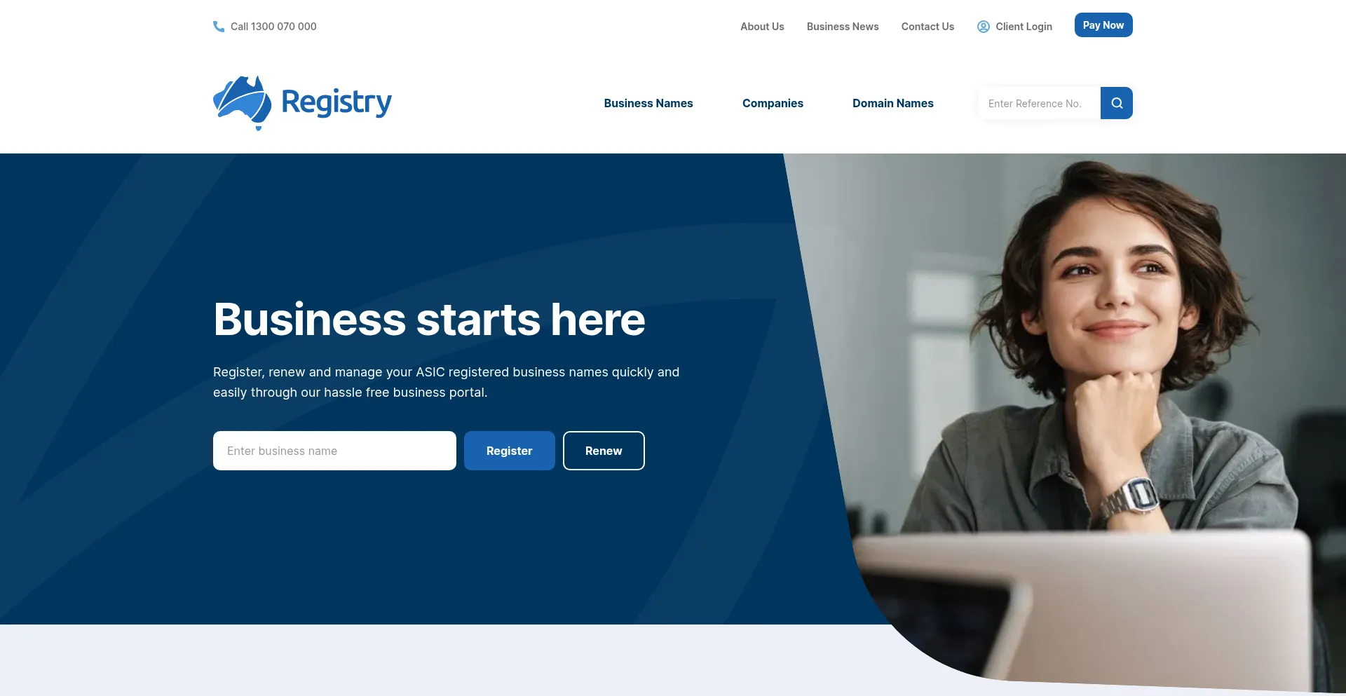 We are Australia's trusted business name registration, renewal & domain name registry services provider. Register or renew your business name online 24/7 or call us on 1300-070-000