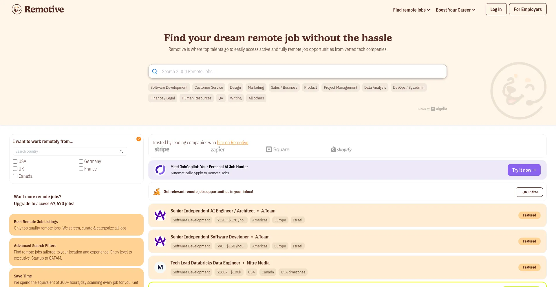 Remote Jobs in Programming, Support, Design and more