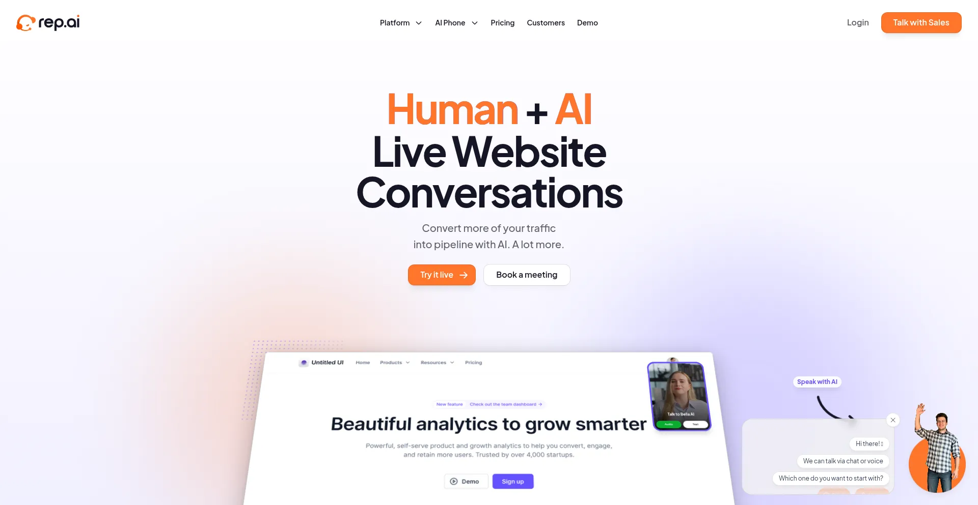 Meet the first AI Sales Rep, Rep.ai. Engage site visitors with video- and voice-ready AI Live Chat and uncover hot prospects with AI Intent.