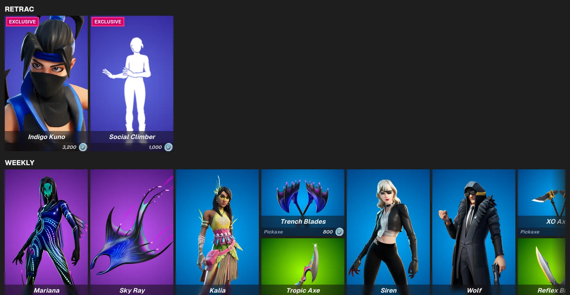 View the current item shop of Retrac, an OG Fortnite Server.