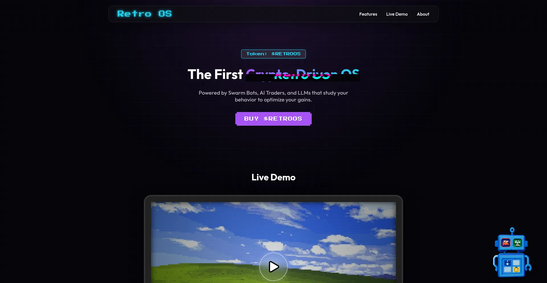 Retroos.xyz parece estar en etapas tempranas de desarrollo con propósito operacional poco claro e implementación de contenido incompleta.