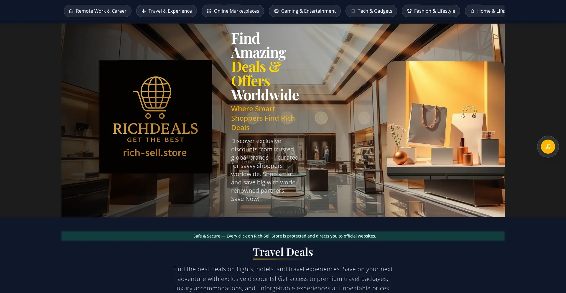 Rich-Sell.Store - Your trusted source for global deals & discounts up to 90% OFF. Travel, fashion, tech, gaming & more from verified brands worldwide. Save smart, shop global!