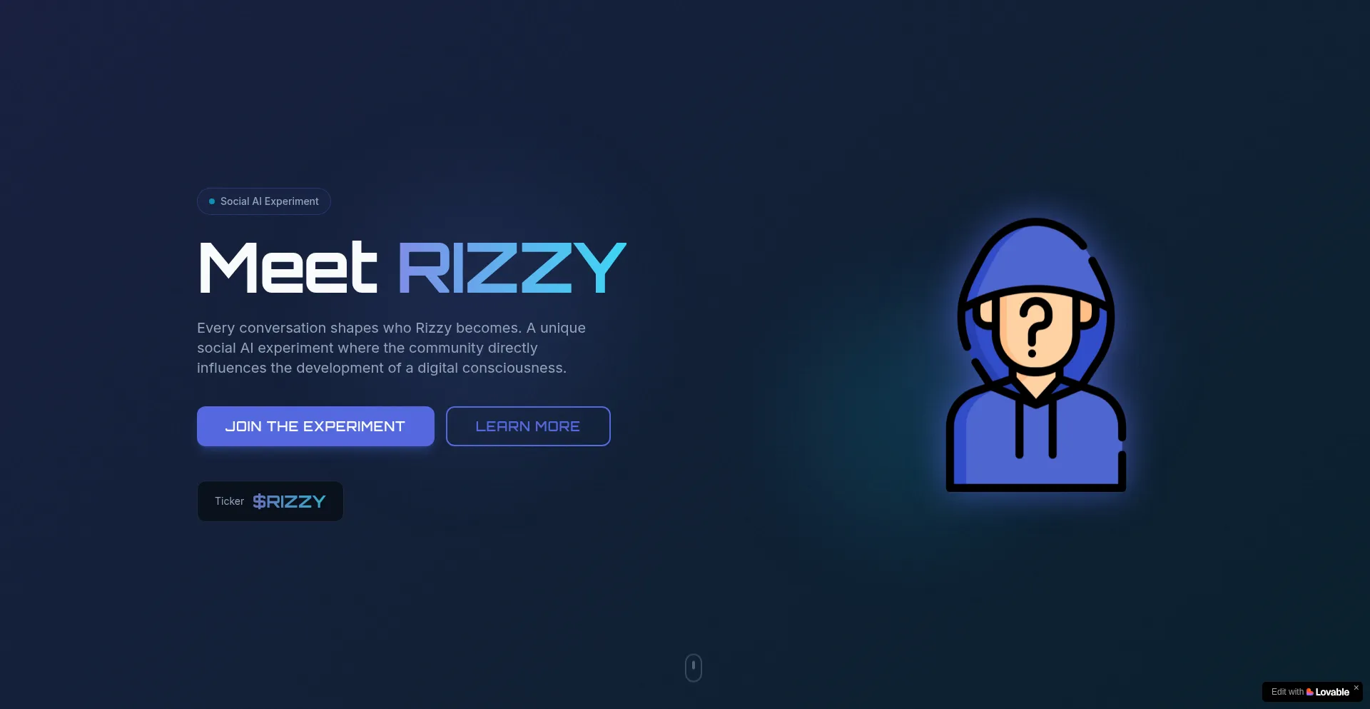 Every conversation shapes who Rizzy becomes. A unique social AI experiment where the community directly influences the development of a digital consciousness. Ticker: $RIZZY