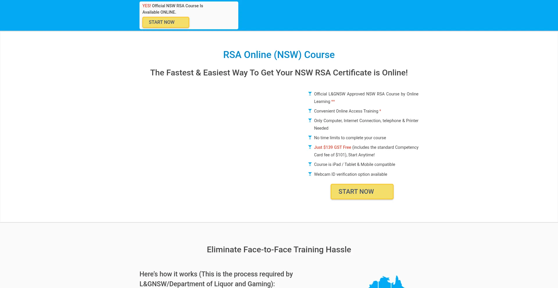 The Official RSA *ONLINE* NSW course is available now for just $139 incl Photocard! 100% Online with OLGR Approved RTO - Convenient, Fast & Affordable! Start Now