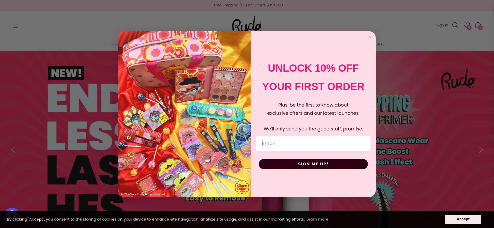El sitio web implementa mecanismos de consentimiento de cookies en cumplimiento con regulaciones de privacidad como GDPR o CCPA. Esto demuestra que rudecosmetics.com adhiere a estándares de protección de datos y proporciona a los usuarios control sobre prácticas de recolección de datos personales.