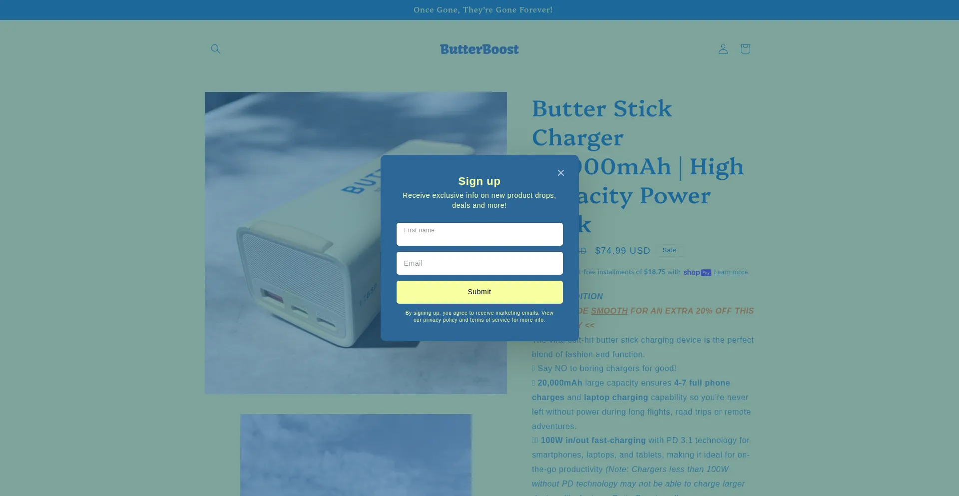 ButterBoost Butter Stick Charger w/ Digital Display - 20,000mAh