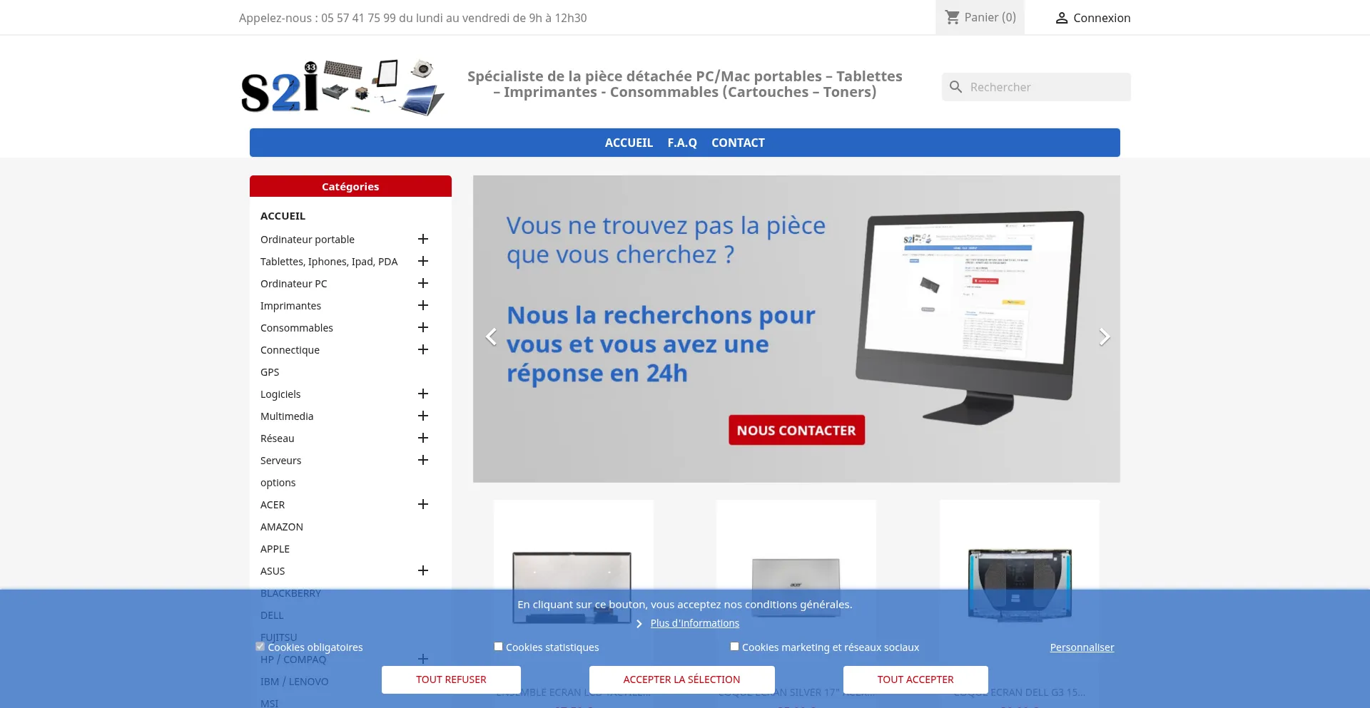 Spécialiste de la pièce détachée PC/Mac portables, tablettes, consommables imprimantes (cartouches, toners)