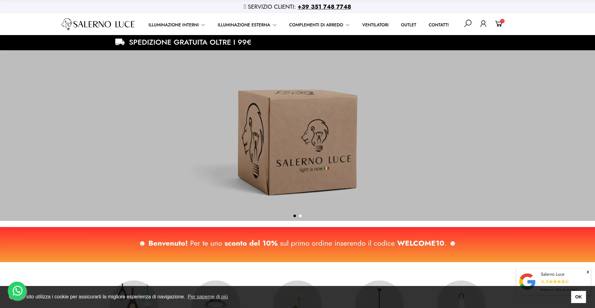 Scopri Salerno Luce: illuminazione indoor e outdoor, complementi di arredo e ventilatori di design. Prodotti delle migliori marche, offerte imperdibili e consulenza esperta.