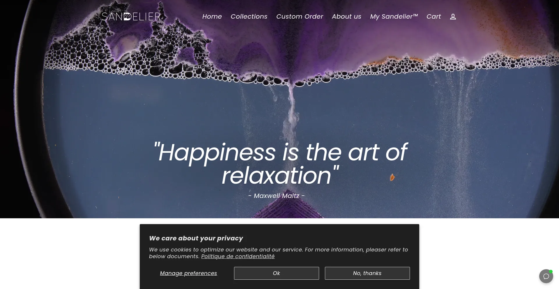 El sitio web implementa mecanismos de consentimiento de cookies en cumplimiento con regulaciones de privacidad como GDPR o CCPA. Esto demuestra que sandelier.com adhiere a estándares de protección de datos y proporciona a los usuarios control sobre prácticas de recolección de datos personales.