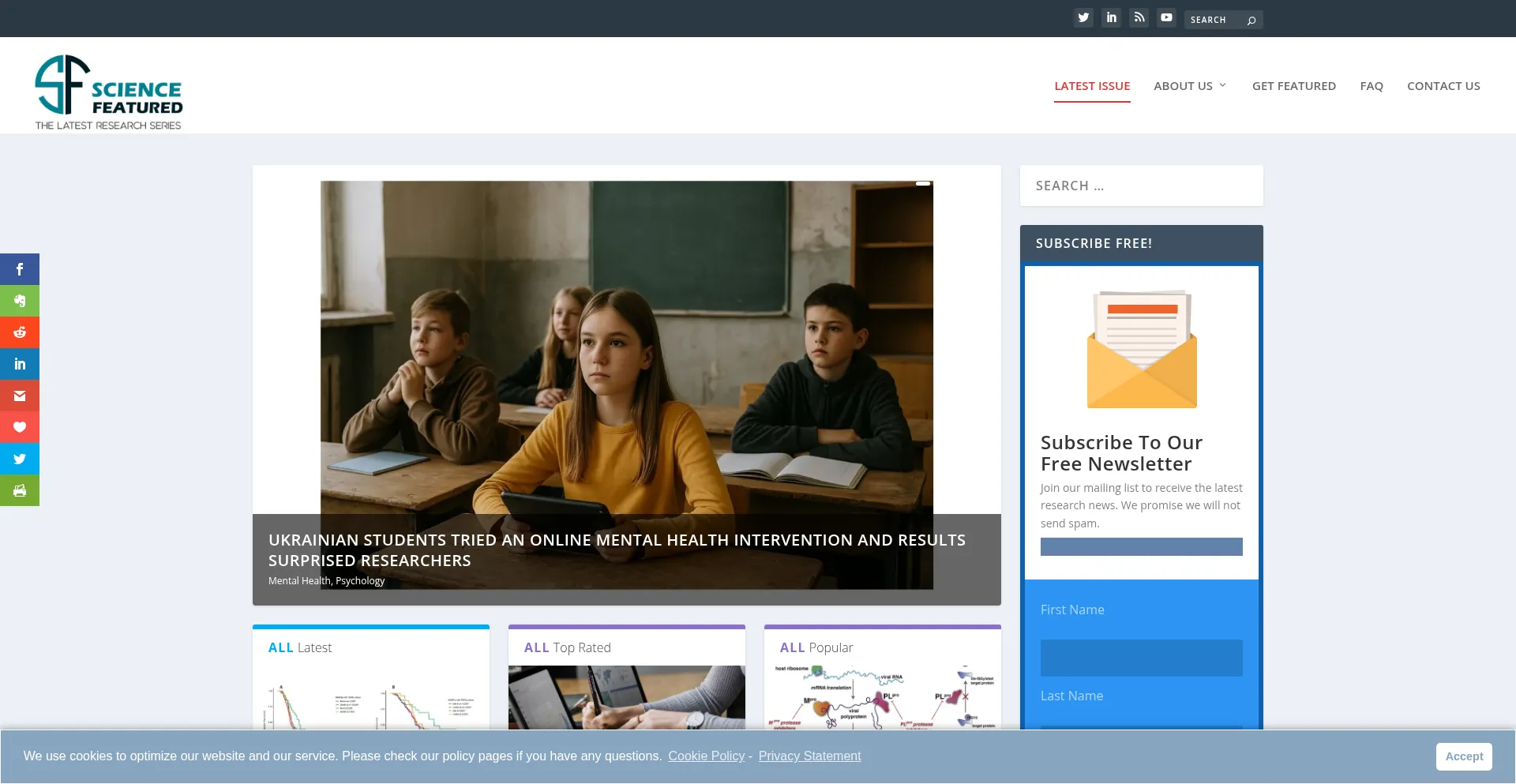 La presencia de enlaces de redes sociales en el sitio web indica que sciencefeatured.com mantiene cuentas oficiales en redes sociales, lo que es un indicador positivo de credibilidad y compromiso.