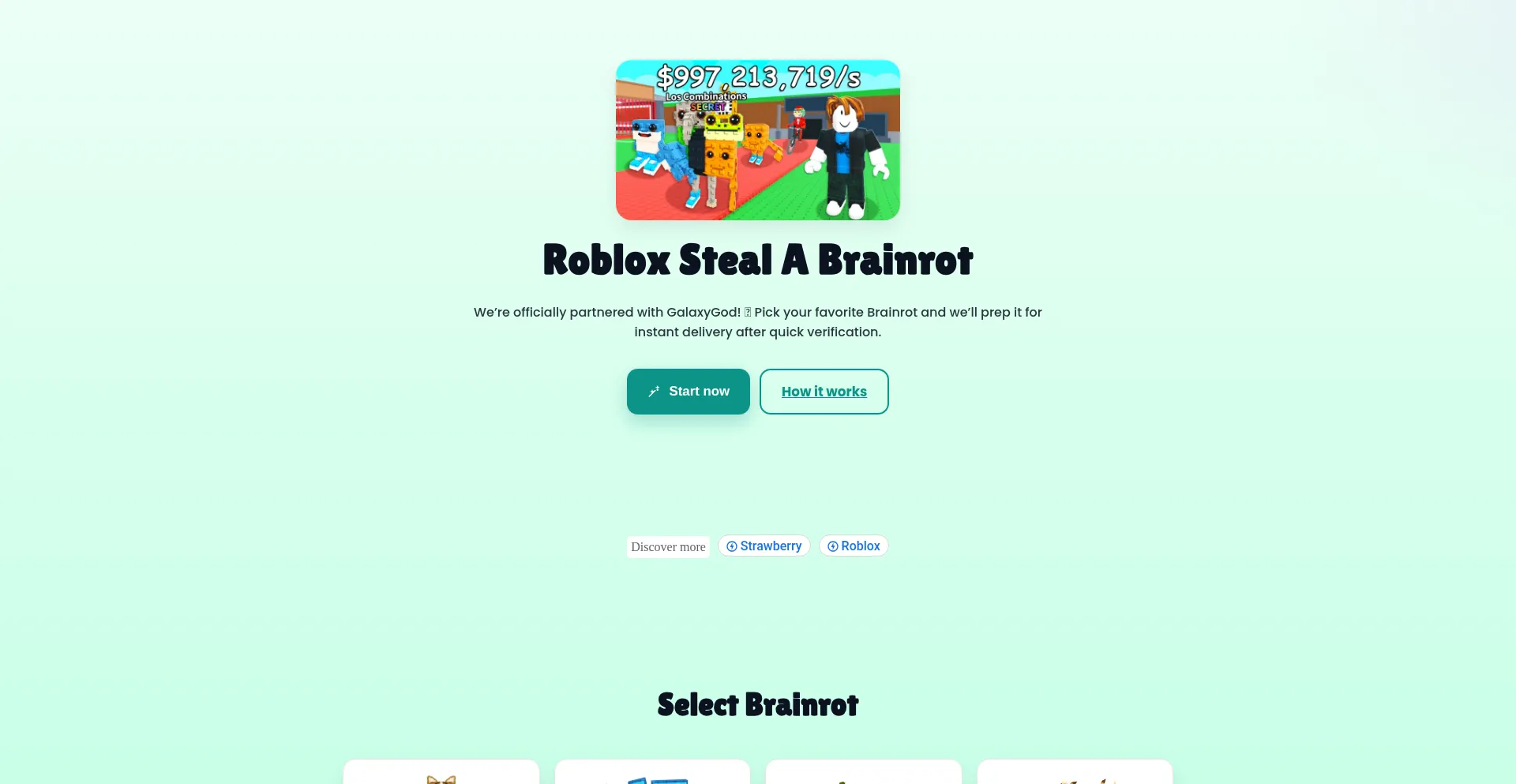 Pick a Brainrot and get it delivered after quick verification. Partnered with GalaxyGod.