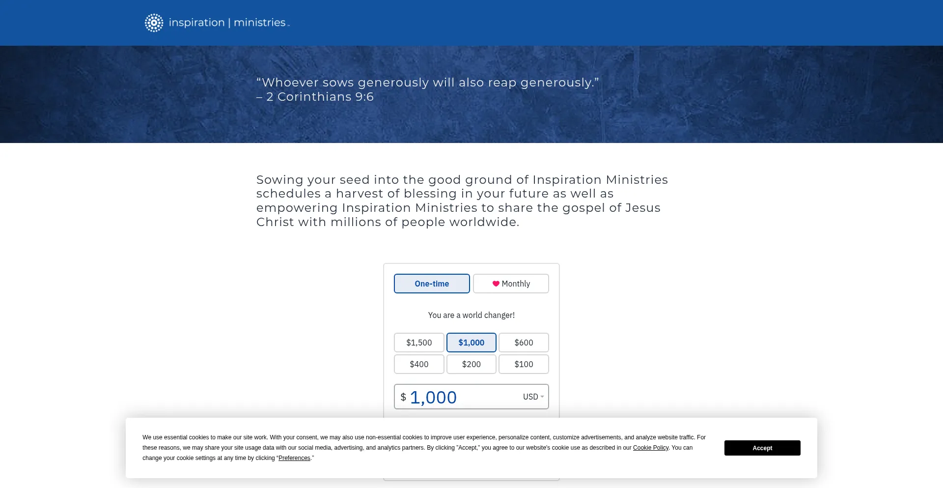 Sowing your seed into the good ground of Inspiration Ministries schedules a harvest of blessing in your future as well as empowering Inspiration Ministries ...