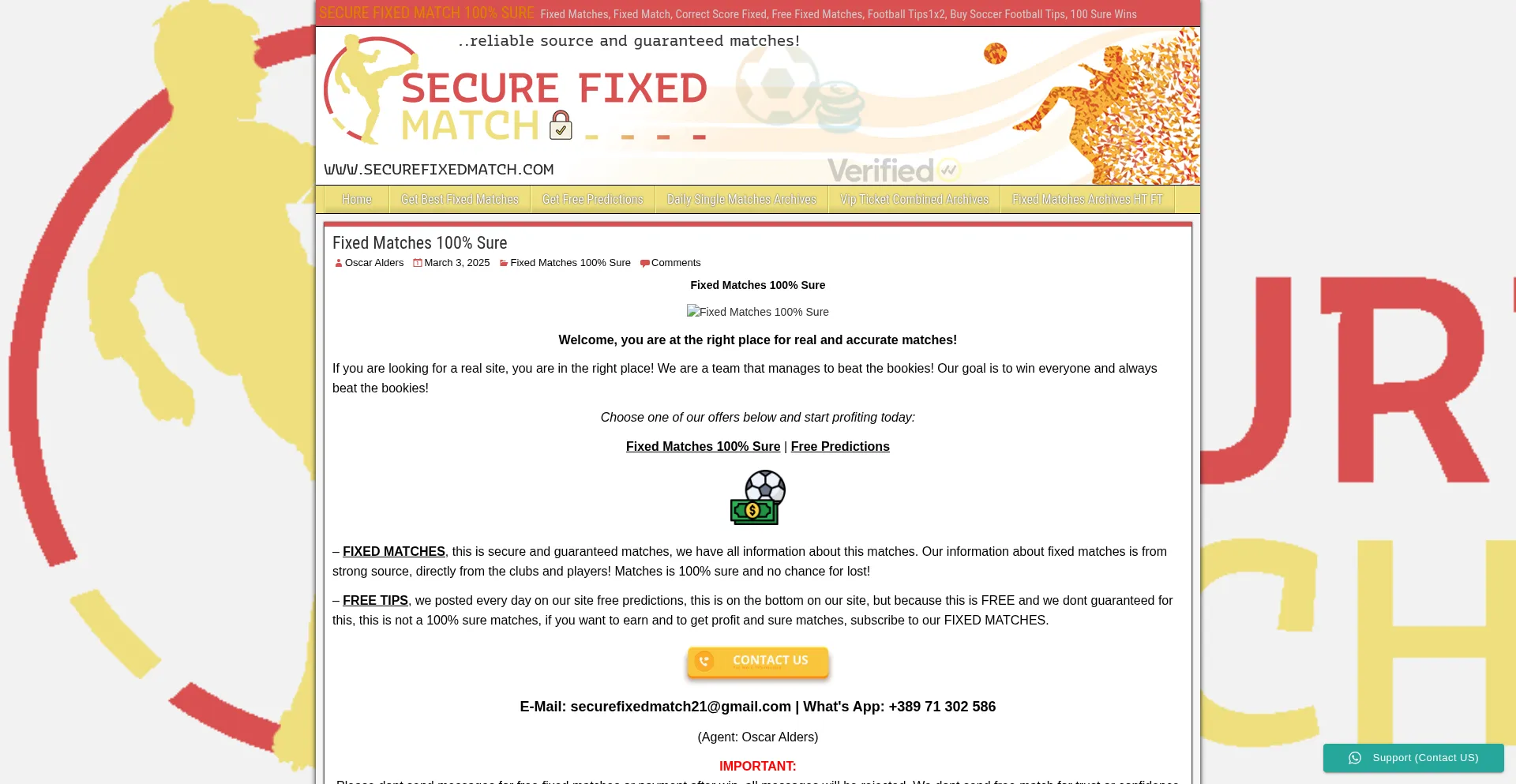SECURE FIXED MATCH 100% SURE - Fixed Matches, Fixed Match, Correct Score Fixed, Free Fixed Matches, Football Tips1x2, Buy Soccer Football Tips, 100 Sure Wins