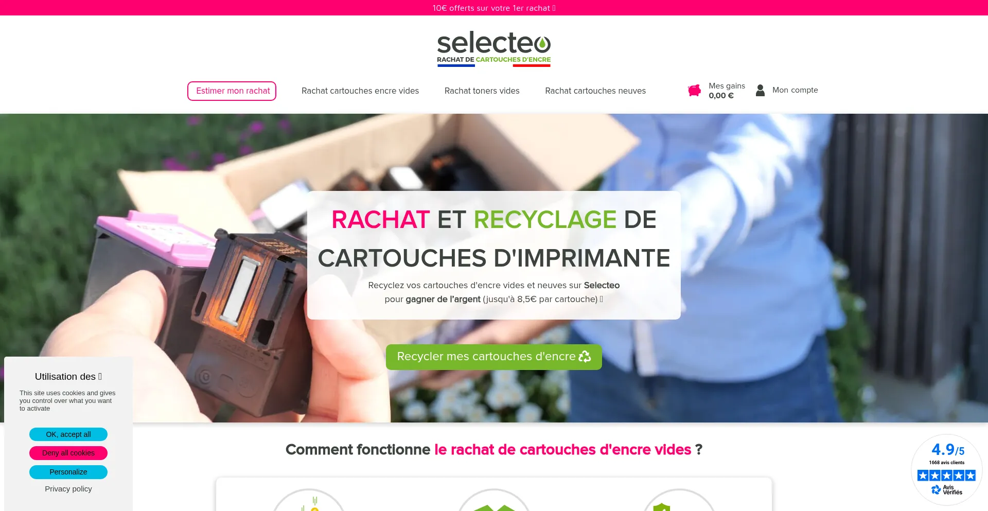 Rachat & Recyclage de cartouches d'encre vides & neuves - Selecteo