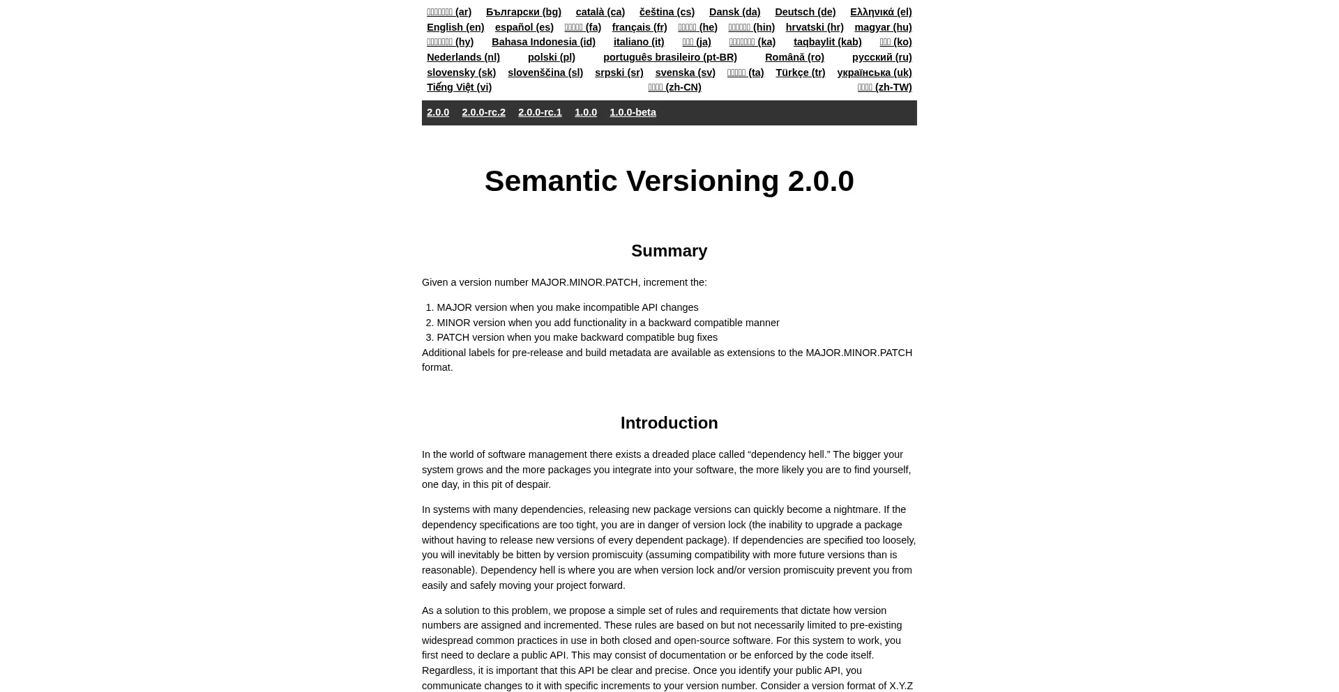 Semver.org Reseña del sitio web