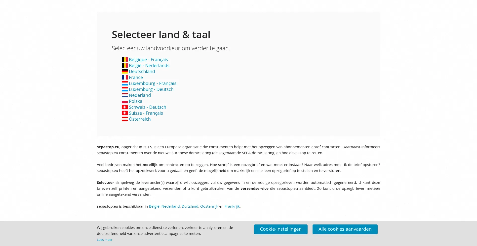 Online abonnementen en domiciliëringen opzeggen via sepastop.eu. Opzeggen was nog nooit zo makkelijk!
