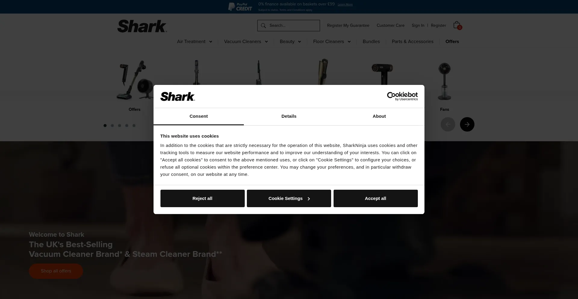 El sitio web implementa mecanismos de consentimiento de cookies en cumplimiento con regulaciones de privacidad como GDPR o CCPA. Esto demuestra que sharkclean.co.uk adhiere a estándares de protección de datos y proporciona a los usuarios control sobre prácticas de recolección de datos personales.