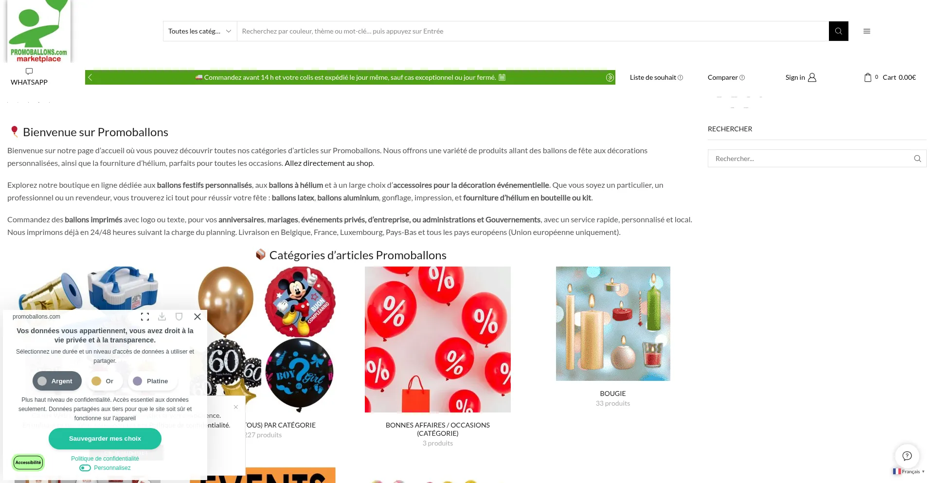 Explorez des ballons festifs et accessoires pour vos événements comme anniversaires, mariages et fêtes avec Promoballons.