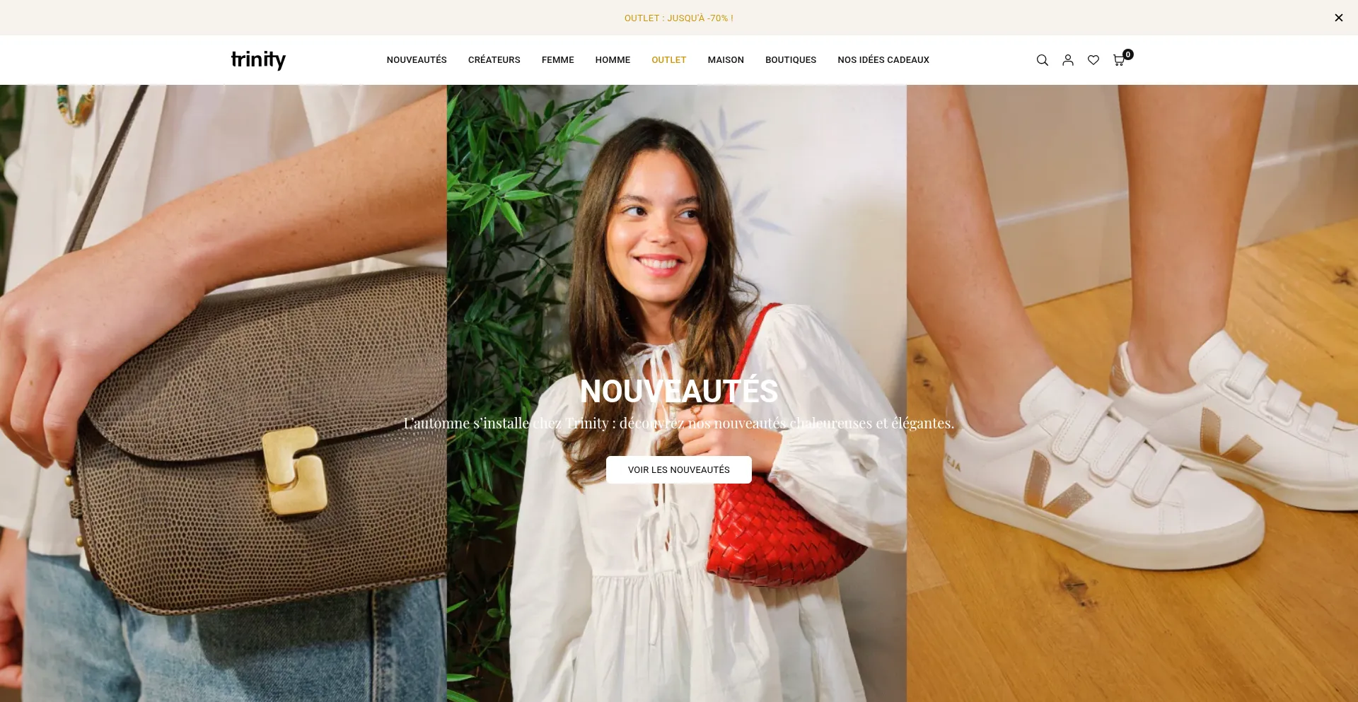 Boutique en ligne des concepts Trinity Mode & Maison, magasins à Auray, Sarzeau et Arzon. Retrouvez les dernières tendances. Livraison offerte sur la mode dès 150€.