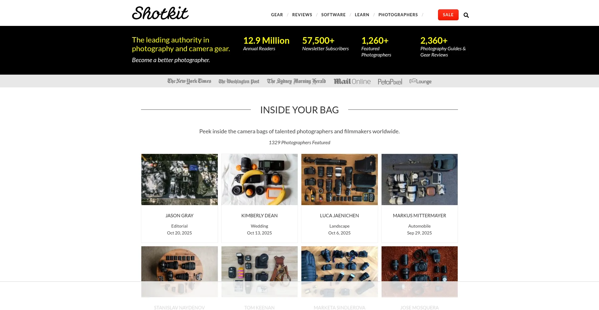 Inspirational photography and a peek inside the camera bags of the world’s best photographers. Learn, improve and grow as a photographer in 2023.