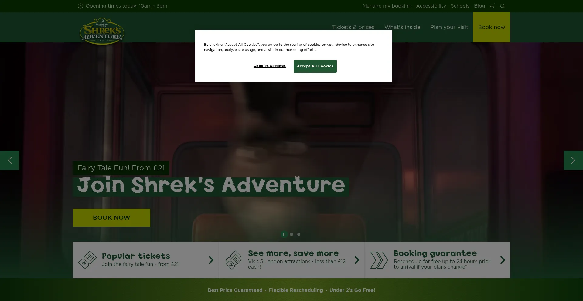 Welcome to the official website for Shrek's Adventure in London! Book tickets online for the best price guaranteed and enjoy our magical fairytale experience.