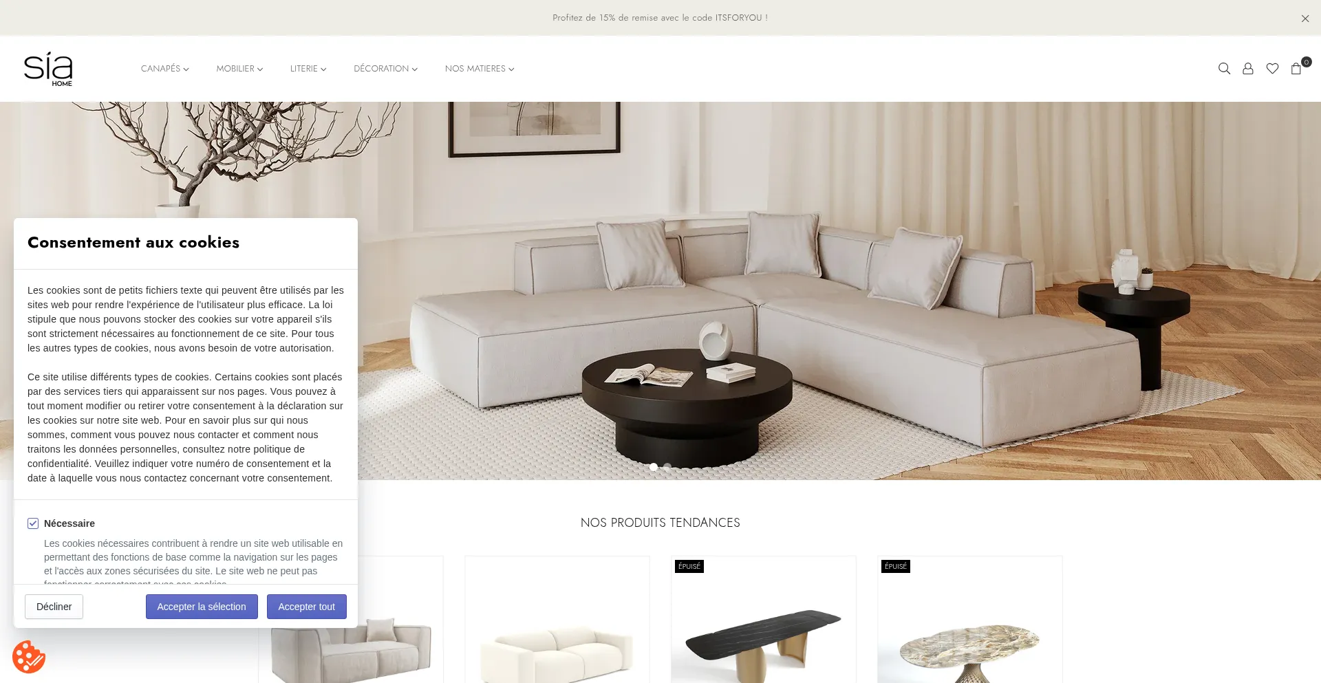 Spécialistes de la décoration et du mobilier d'intérieur depuis 1963. Canapés, Lits, Tables, Luminaires, Cadres, Senteurs, Tapis ou encore Linge de maison. Découvrez tout n...