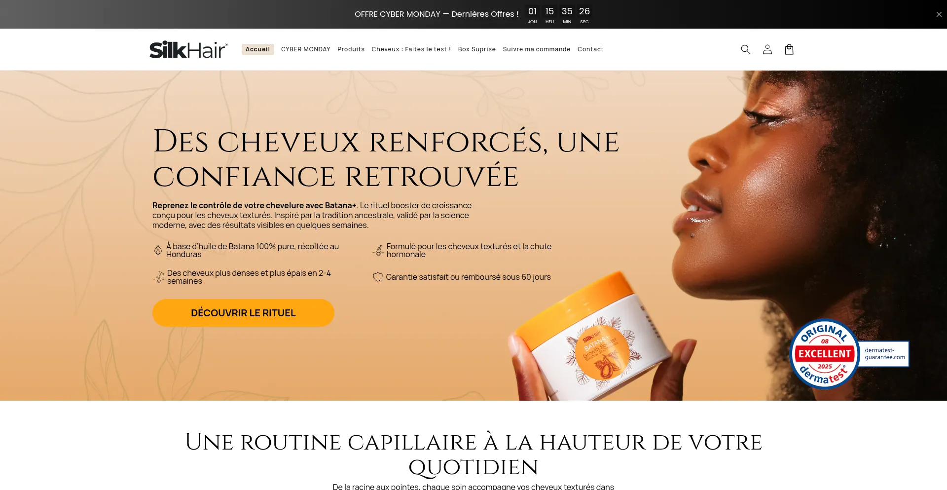 Découvrez SilkHair, la marque qui redonne vie à vos cheveux avec de l'huile de Batana 100 % naturelle. Favorisez la croissance capillaire, augmentez la brillance et améliorez...