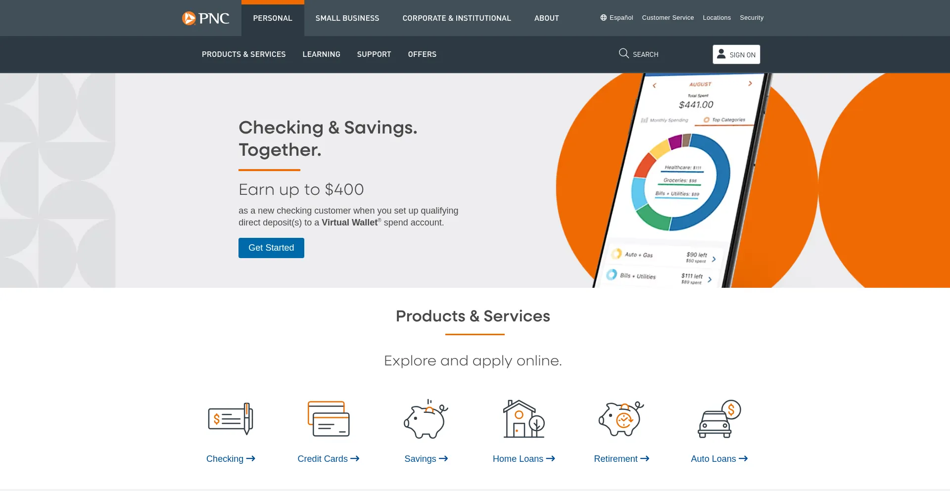 PNC Bank offers a wide range of personal banking services including checking and savings accounts, credit cards, mortgage loans, auto loans and much more.