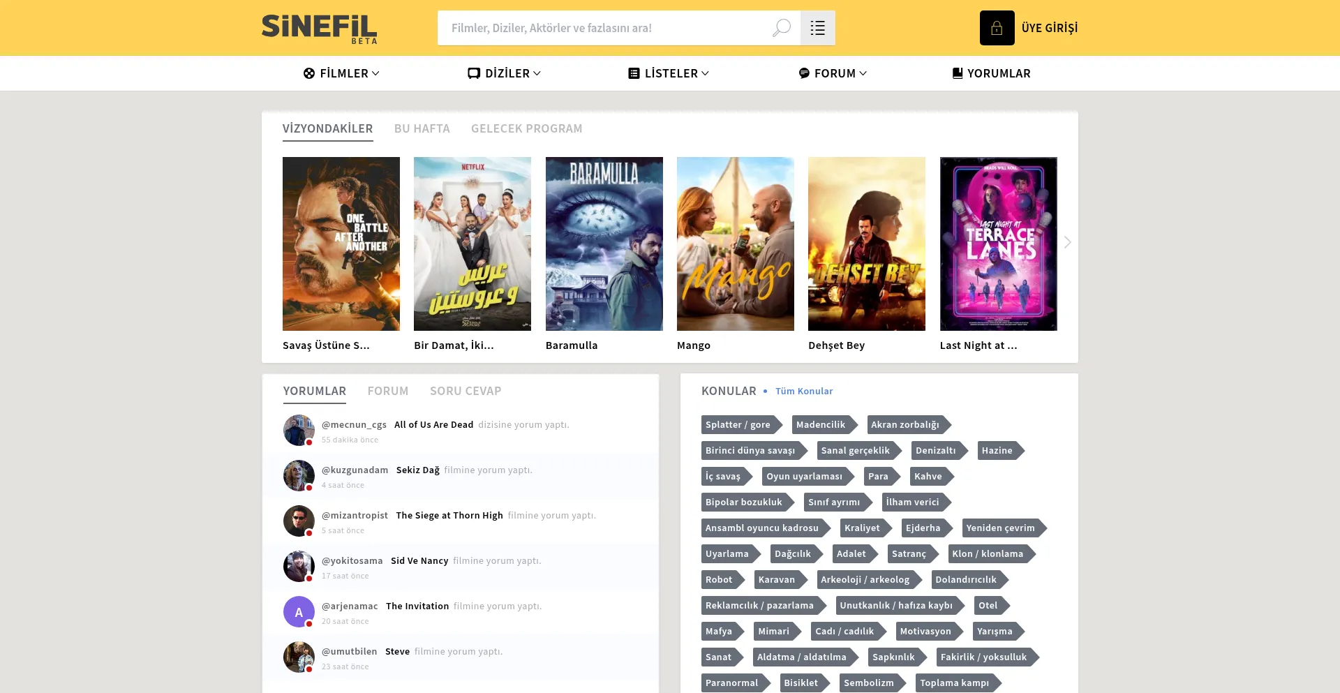 Sinefil nam-ı diğer Filim Adamı, sinema ve tv oburları için kurulmuş online arşivleme sitesidir. İzlediğiniz film ve dizilerin kaydını tutabilir, listeler oluşturabi...