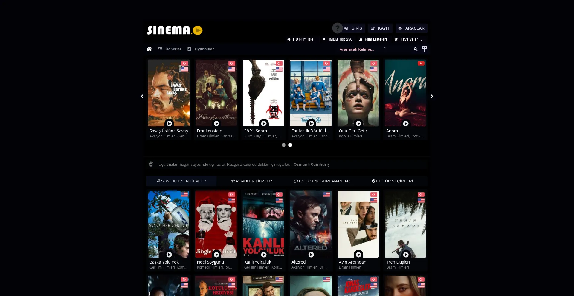 Türkiye'nin en iyi film platformu Sinema.cc! 2025'in en yeni ve popüler yabancı yapımları, Türkçe dublaj ve altyazılı HD kalitede, reklamsız ve ücretsiz olarak seni b...