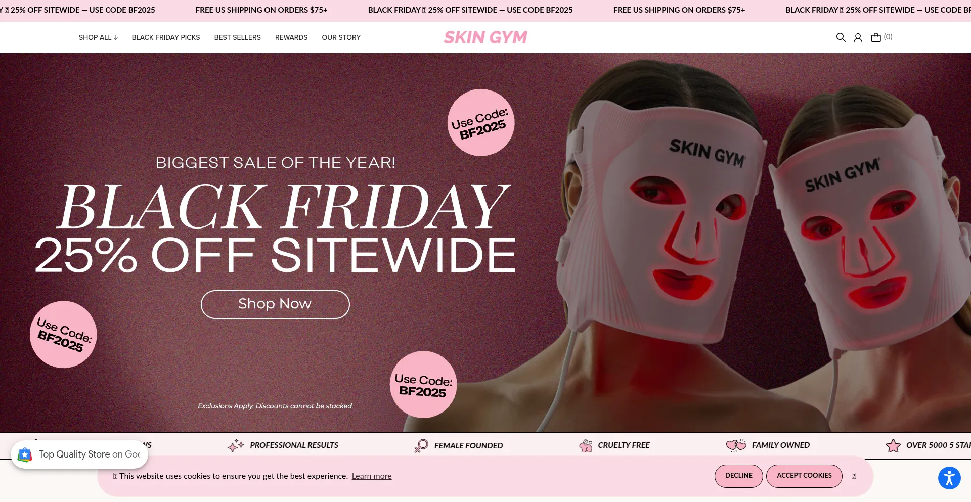 El sitio web implementa mecanismos de consentimiento de cookies en cumplimiento con regulaciones de privacidad como GDPR o CCPA. Esto demuestra que skingymco.com adhiere a estándares de protección de datos y proporciona a los usuarios control sobre prácticas de recolección de datos personales.