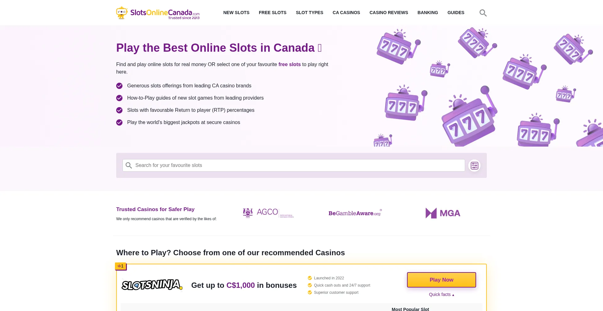 Slotsonlinecanada.com Reseña del sitio web
